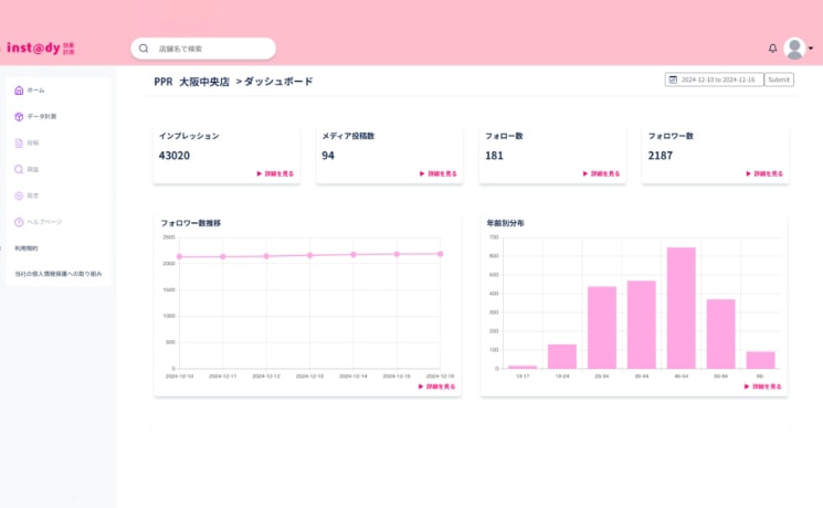 当社では、独自に開発した分析機能付きの管理画面をご提供しています。この管理画面を通じて、投稿のパフォーマンスやフォロワーの動向をリアルタイムで確認できるため、SNS運用の成果を一目で把握可能です。さらに、データに基づいた改善提案をスムーズに行えるため、より効果的な運用が実現します。この付加価値により、クライアントのビジネス成長を強力にサポートします。