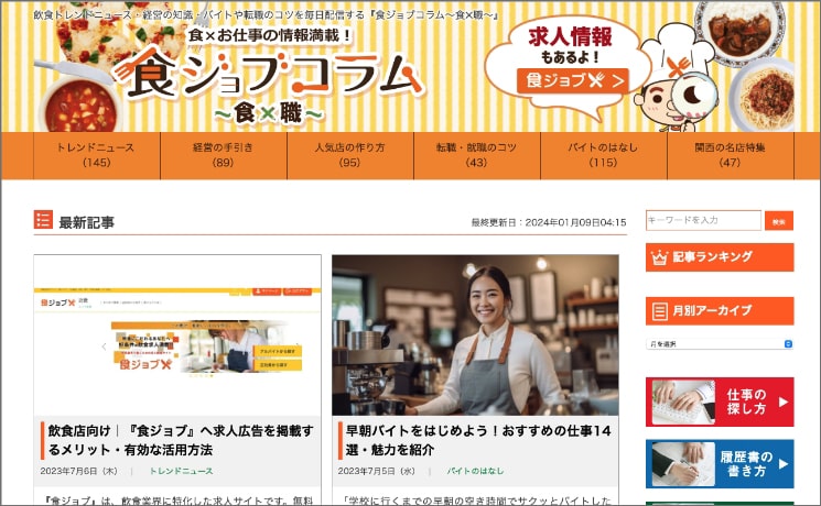 飲食業界に特化した求人サイト。全国掲載可能で、成果報酬プランでの掲載が可能。WEBのみだけでなく、掲載・非掲載も店舗で選択可能で、店内販促用のPOPなどもご用意可能です。